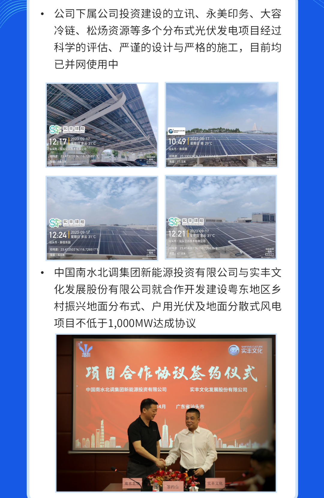 上一篇 : 实丰文化与中国南水北调集团新能源投资有限公司签订项目合作协议